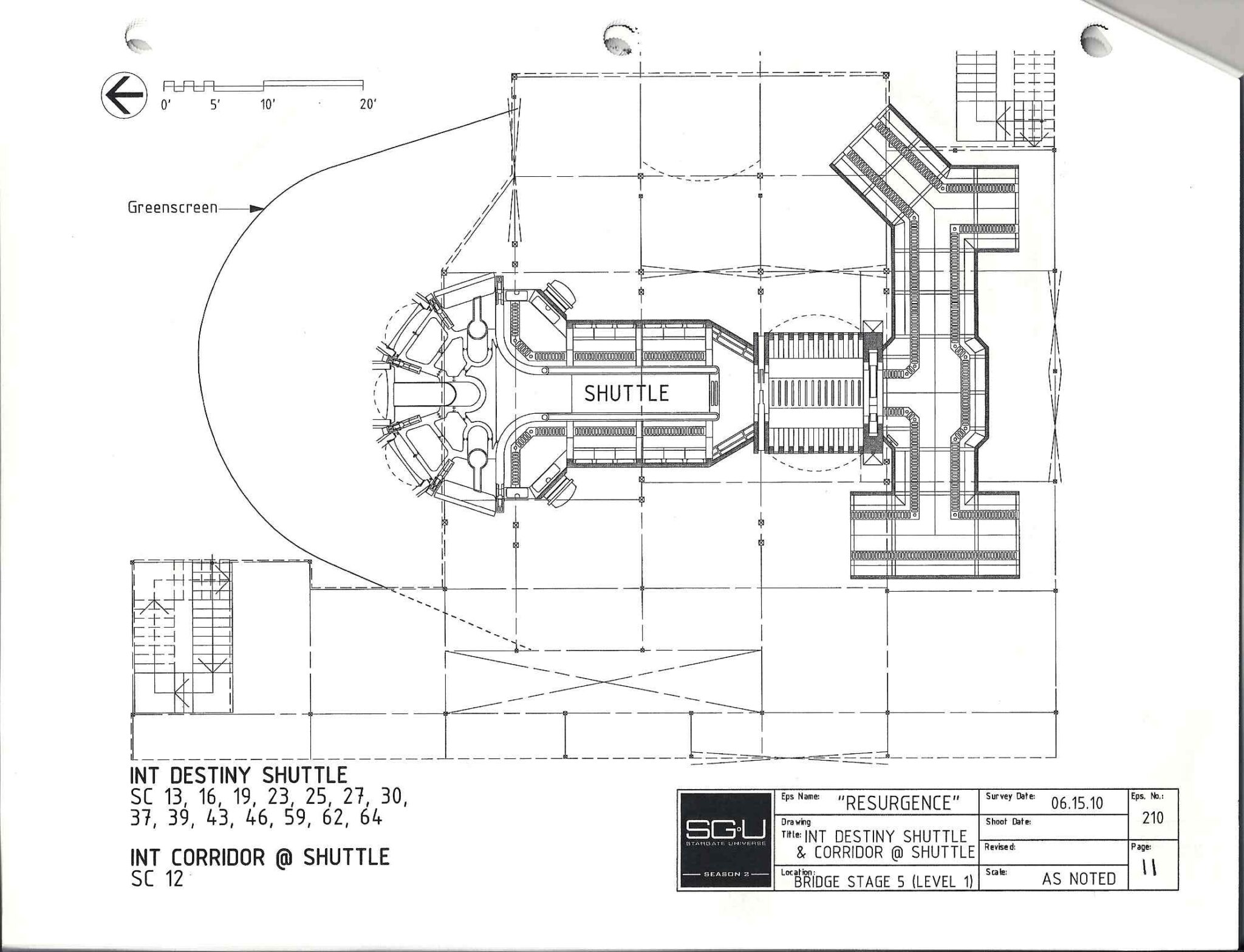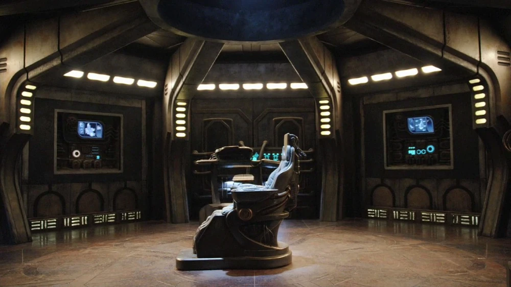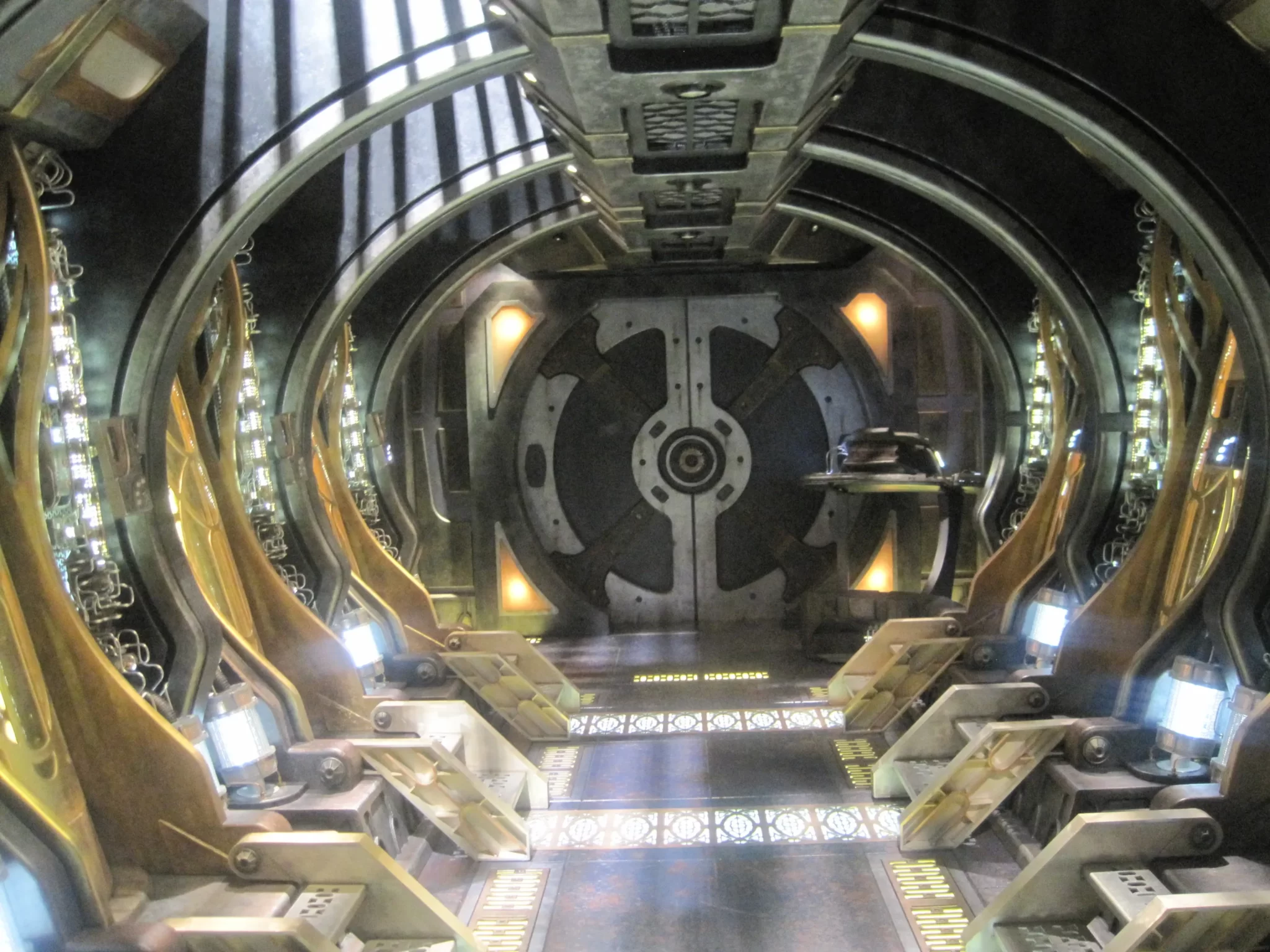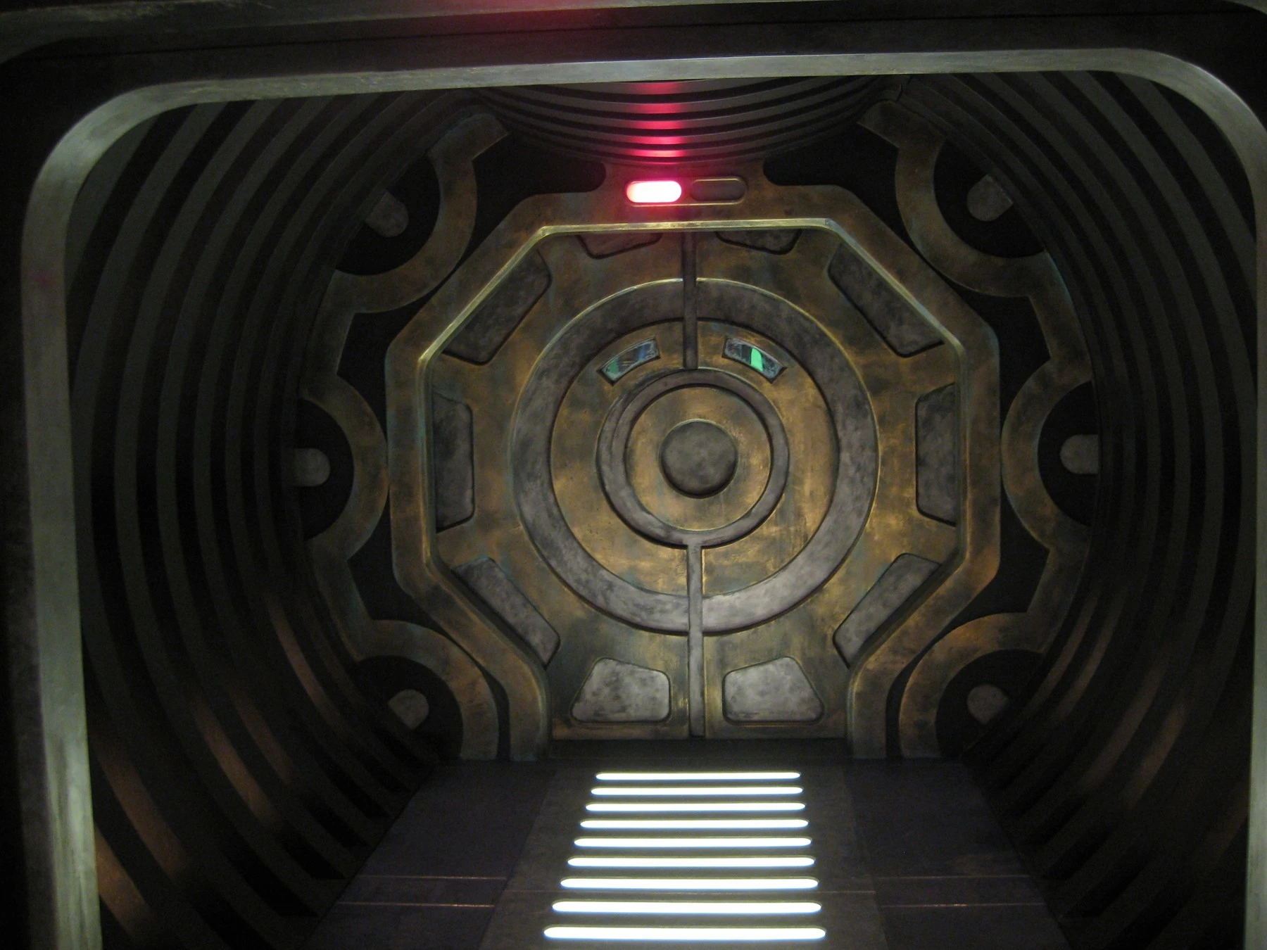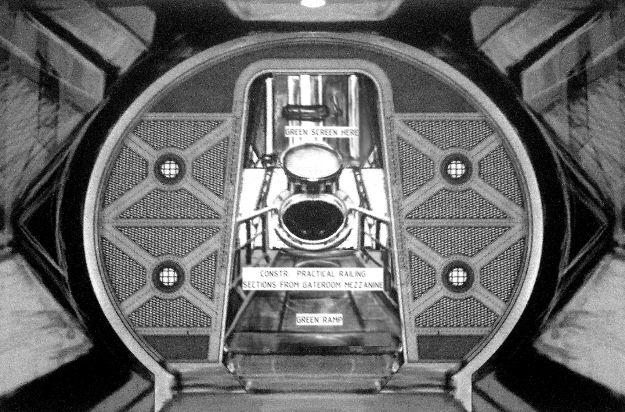 James Robbins, produkční designér, se začal zabývat koncepty „na podzim minulého roku“. Prvním úkolem bylo vymyslet koncept studia a organizační strukturu pro kulisami. Loď představuje velmi starou historickou strukturu vyrobenou z oceli, s řadou sloupů a nosníků. Po třech až čtyřech týdnech malování kulis bylo přidáno betonování, aby se ocelové součásti dobře podepřely. Loď je obrovská, s kilometry chodeb. Studio samotné má na délku 45,7 metrů, přičemž místnost s bránou a přilehlé chodby zabírají na délku asi 42,6 metrů. Celý prostor studia tak byl využit k vytvoření dojmu velikosti. Různé části chodeb lze různě konfigurovat, což umožňuje vytvořit 20 až 30 různých lokací na jednom natáčecím místě. Sloupy, světla, konzole a další dekorace lze snadno vyměňovat a kombinovat. Kolem místnosti s bránou bylo nainstalováno asi 30 mechanizovaných dveří. Oddělení speciálních efektů si dokonce objednalo motory pro dveře až z Japonska, aby zajistilo správný dojem při jejich otevírání.
