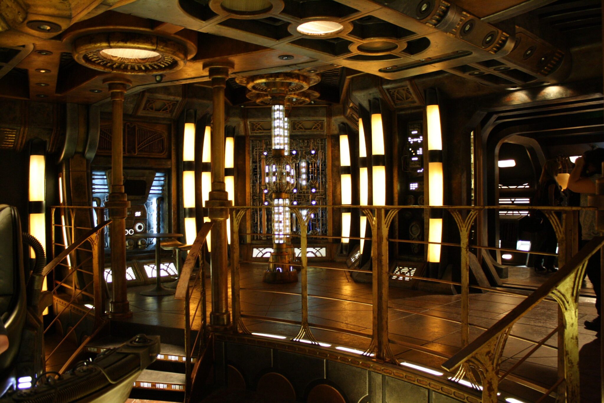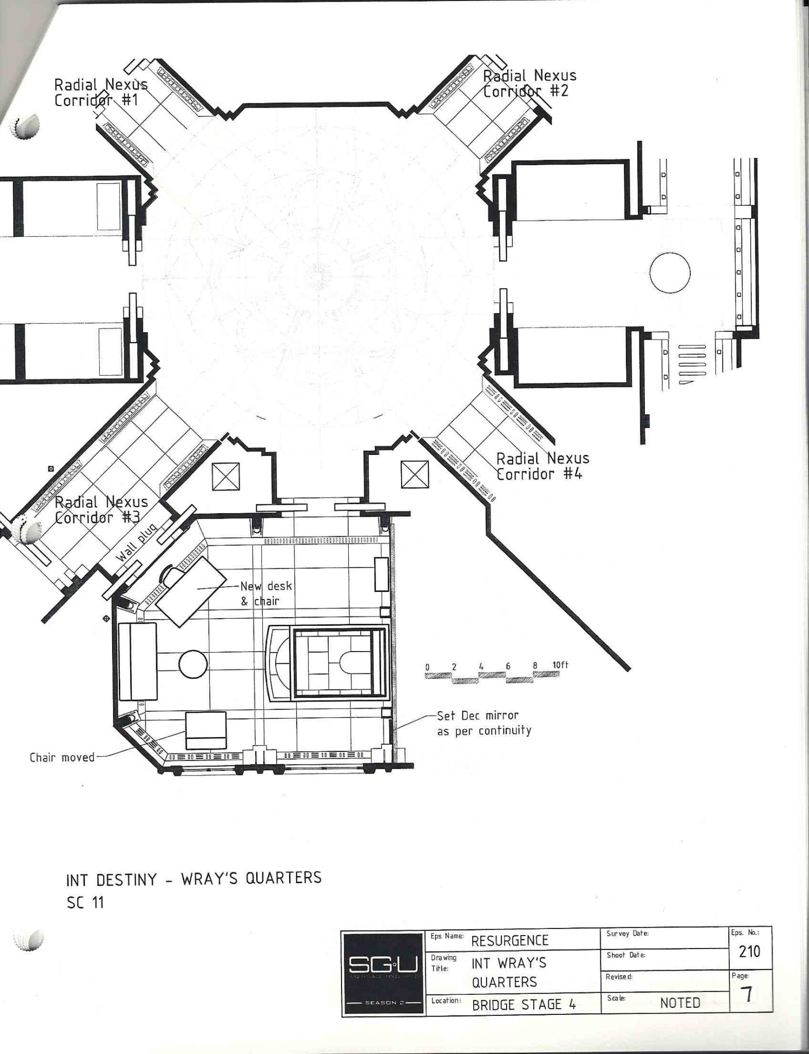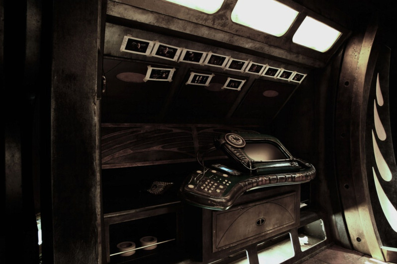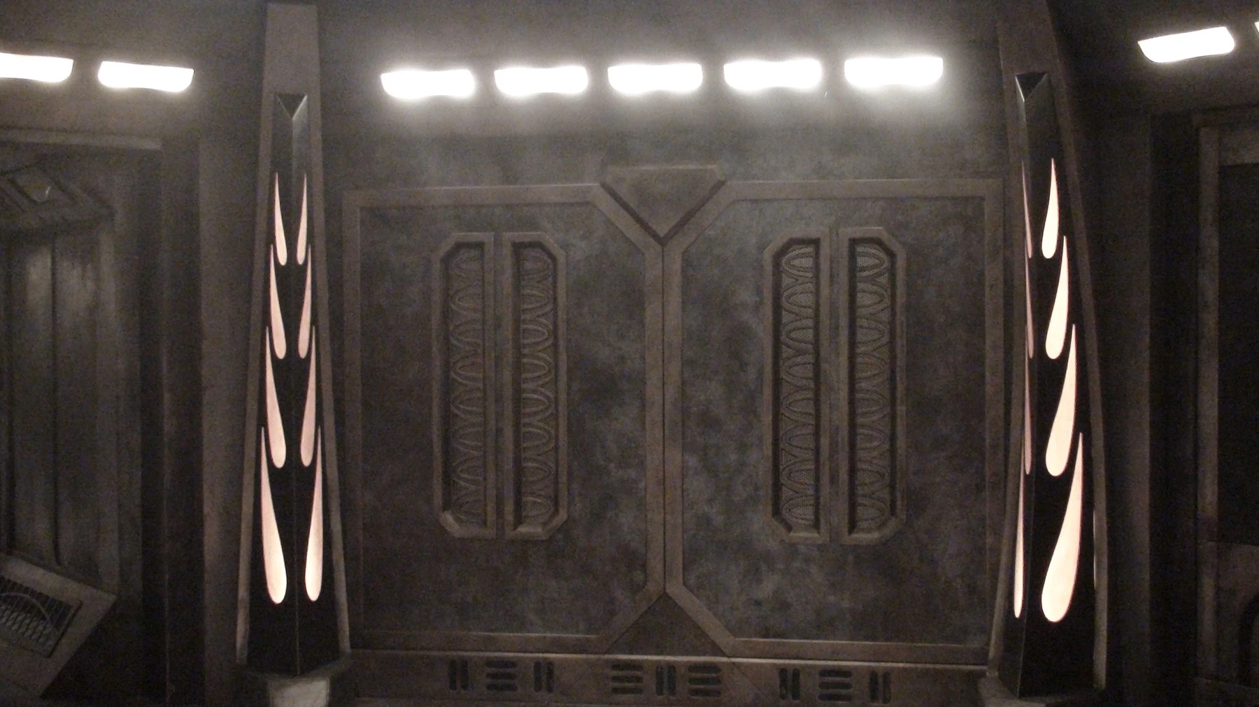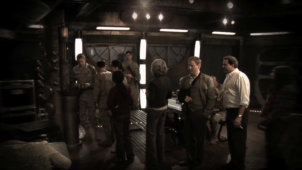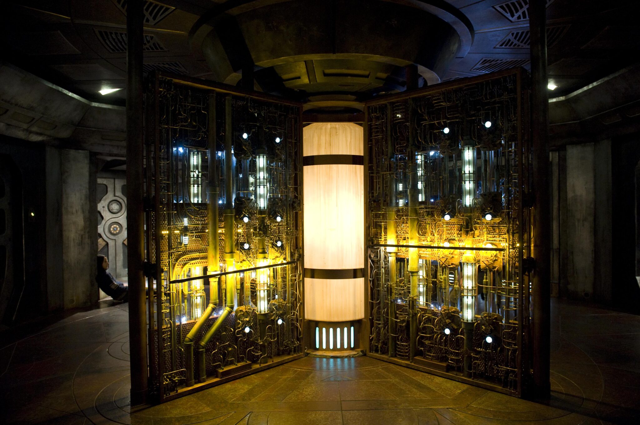 James Robbins, produkční designér, se začal zabývat koncepty „na podzim minulého roku“. Prvním úkolem bylo vymyslet koncept studia a organizační strukturu pro kulisami. Loď představuje velmi starou historickou strukturu vyrobenou z oceli, s řadou sloupů a nosníků. Po třech až čtyřech týdnech malování kulis bylo přidáno betonování, aby se ocelové součásti dobře podepřely. Loď je obrovská, s kilometry chodeb. Studio samotné má na délku 45,7 metrů, přičemž místnost s bránou a přilehlé chodby zabírají na délku asi 42,6 metrů. Celý prostor studia tak byl využit k vytvoření dojmu velikosti. Různé části chodeb lze různě konfigurovat, což umožňuje vytvořit 20 až 30 různých lokací na jednom natáčecím místě. Sloupy, světla, konzole a další dekorace lze snadno vyměňovat a kombinovat. Kolem místnosti s bránou bylo nainstalováno asi 30 mechanizovaných dveří. Oddělení speciálních efektů si dokonce objednalo motory pro dveře až z Japonska, aby zajistilo správný dojem při jejich otevírání.