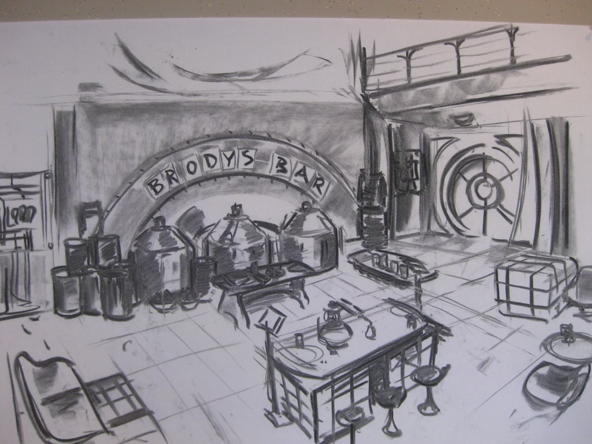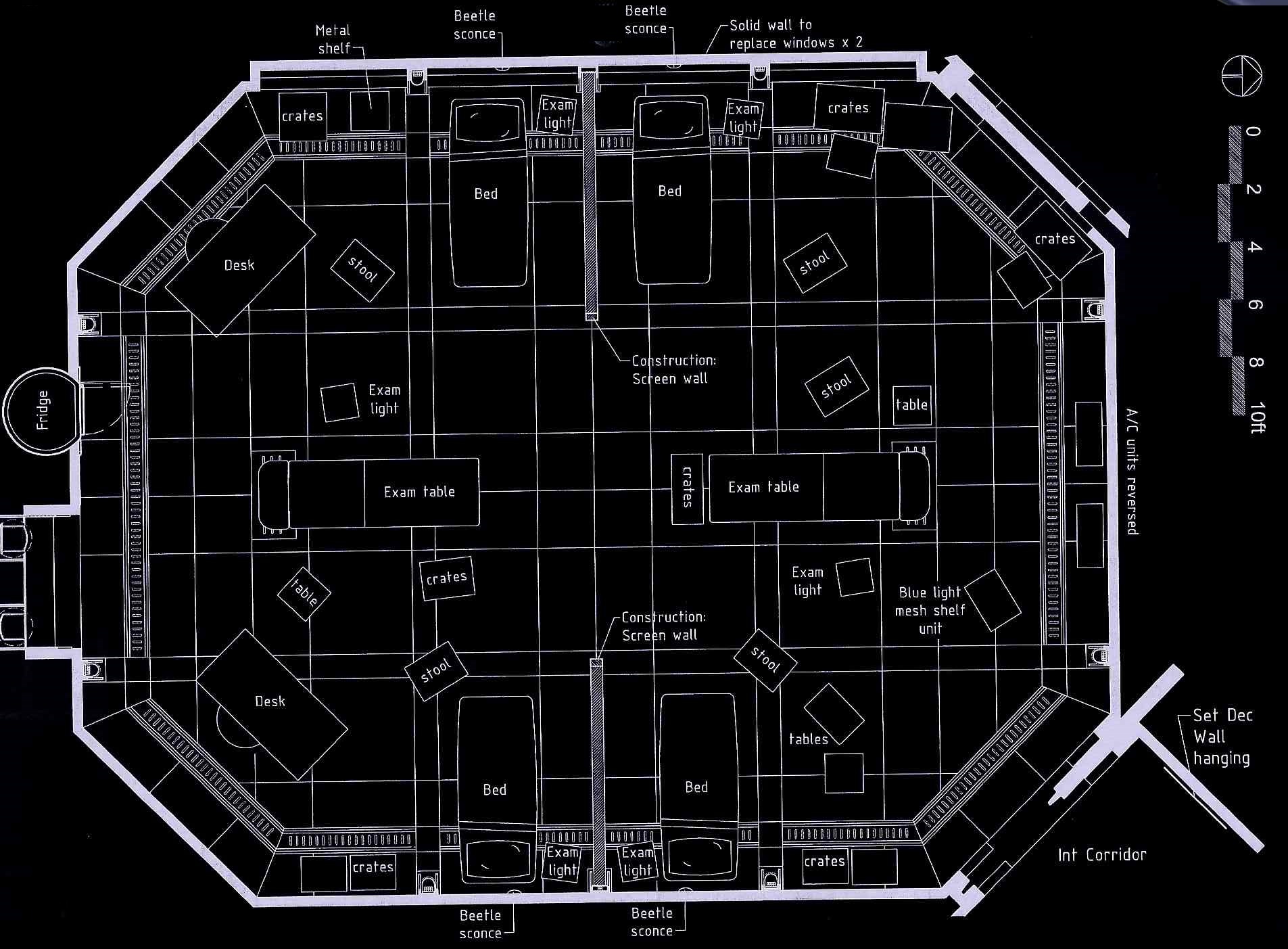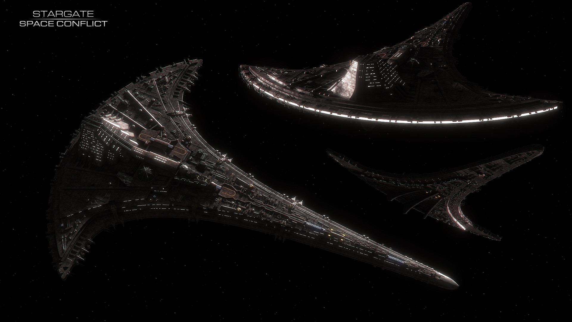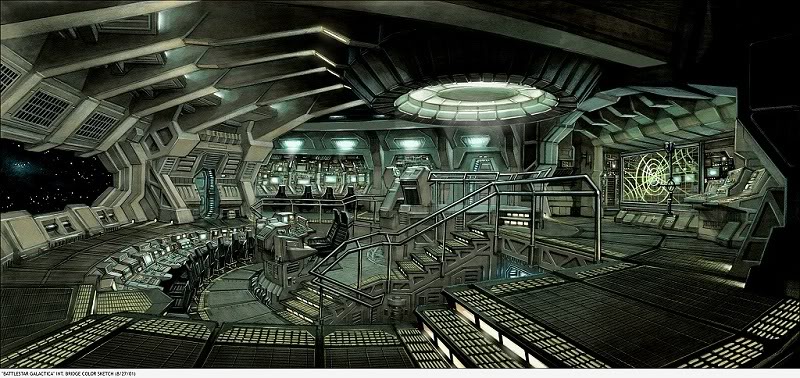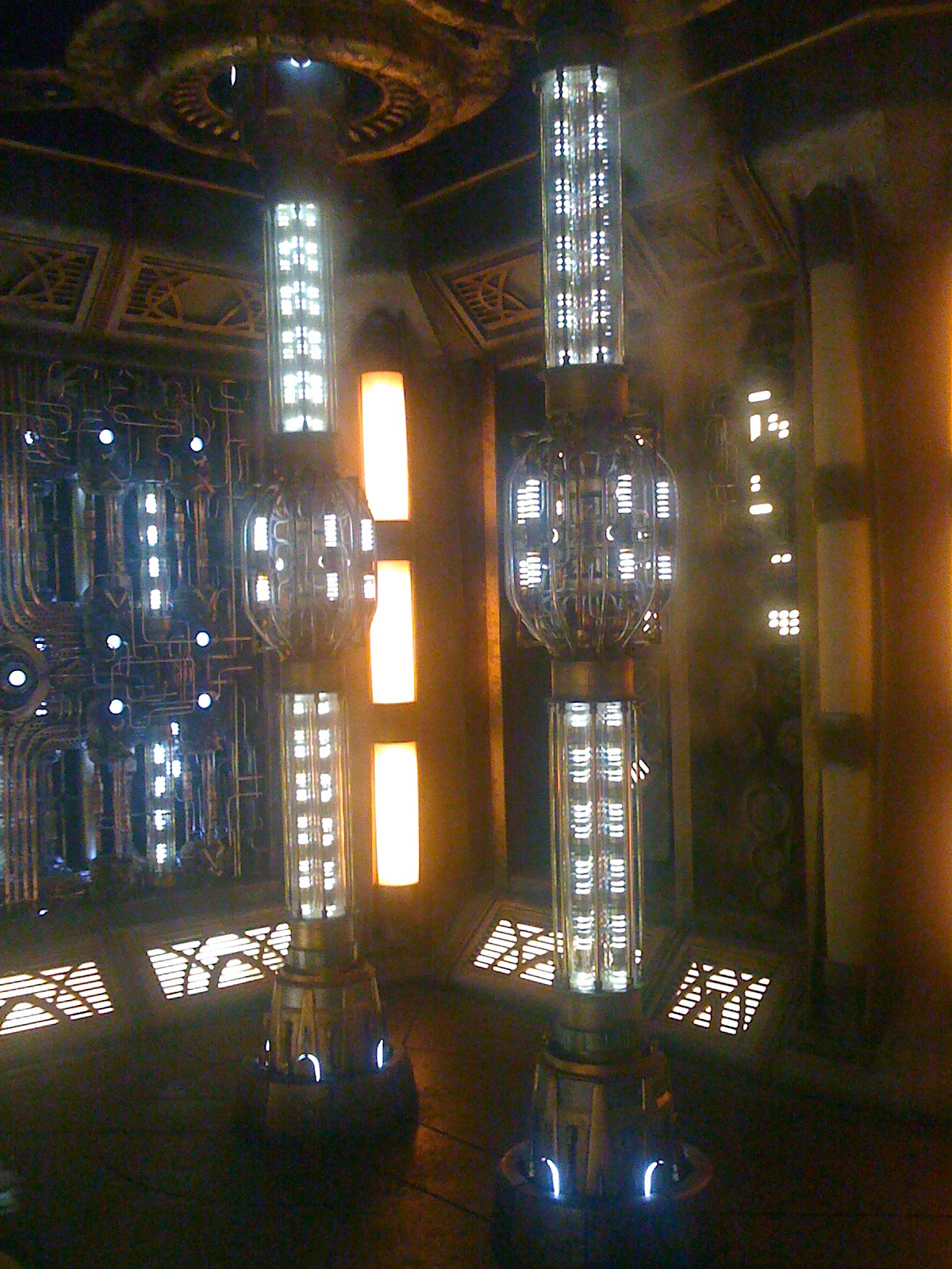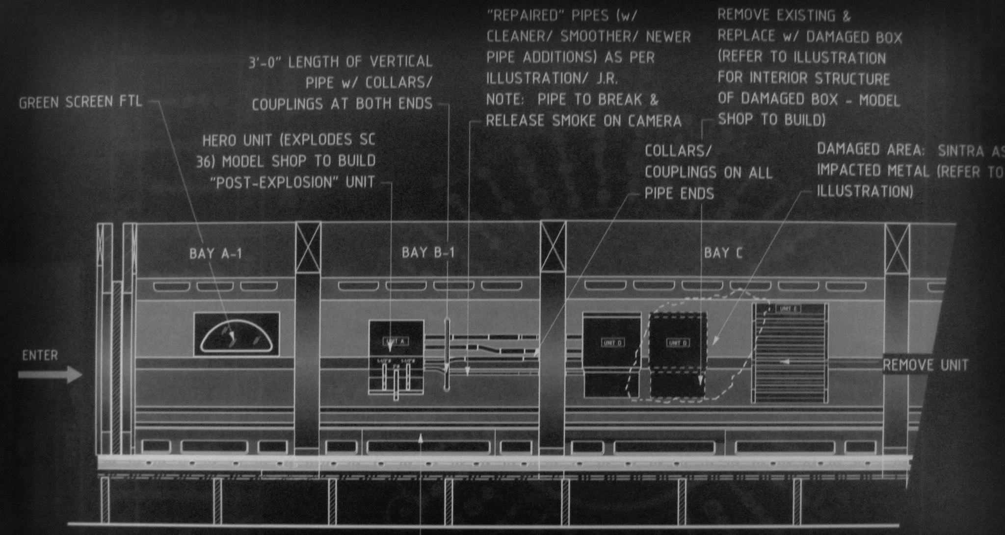 James Robbins, produkční designér, se začal zabývat koncepty „na podzim minulého roku“. Prvním úkolem bylo vymyslet koncept studia a organizační strukturu pro kulisami. Loď představuje velmi starou historickou strukturu vyrobenou z oceli, s řadou sloupů a nosníků. Po třech až čtyřech týdnech malování kulis bylo přidáno betonování, aby se ocelové součásti dobře podepřely. Loď je obrovská, s kilometry chodeb. Studio samotné má na délku 45,7 metrů, přičemž místnost s bránou a přilehlé chodby zabírají na délku asi 42,6 metrů. Celý prostor studia tak byl využit k vytvoření dojmu velikosti. Různé části chodeb lze různě konfigurovat, což umožňuje vytvořit 20 až 30 různých lokací na jednom natáčecím místě. Sloupy, světla, konzole a další dekorace lze snadno vyměňovat a kombinovat. Kolem místnosti s bránou bylo nainstalováno asi 30 mechanizovaných dveří. Oddělení speciálních efektů si dokonce objednalo motory pro dveře až z Japonska, aby zajistilo správný dojem při jejich otevírání.