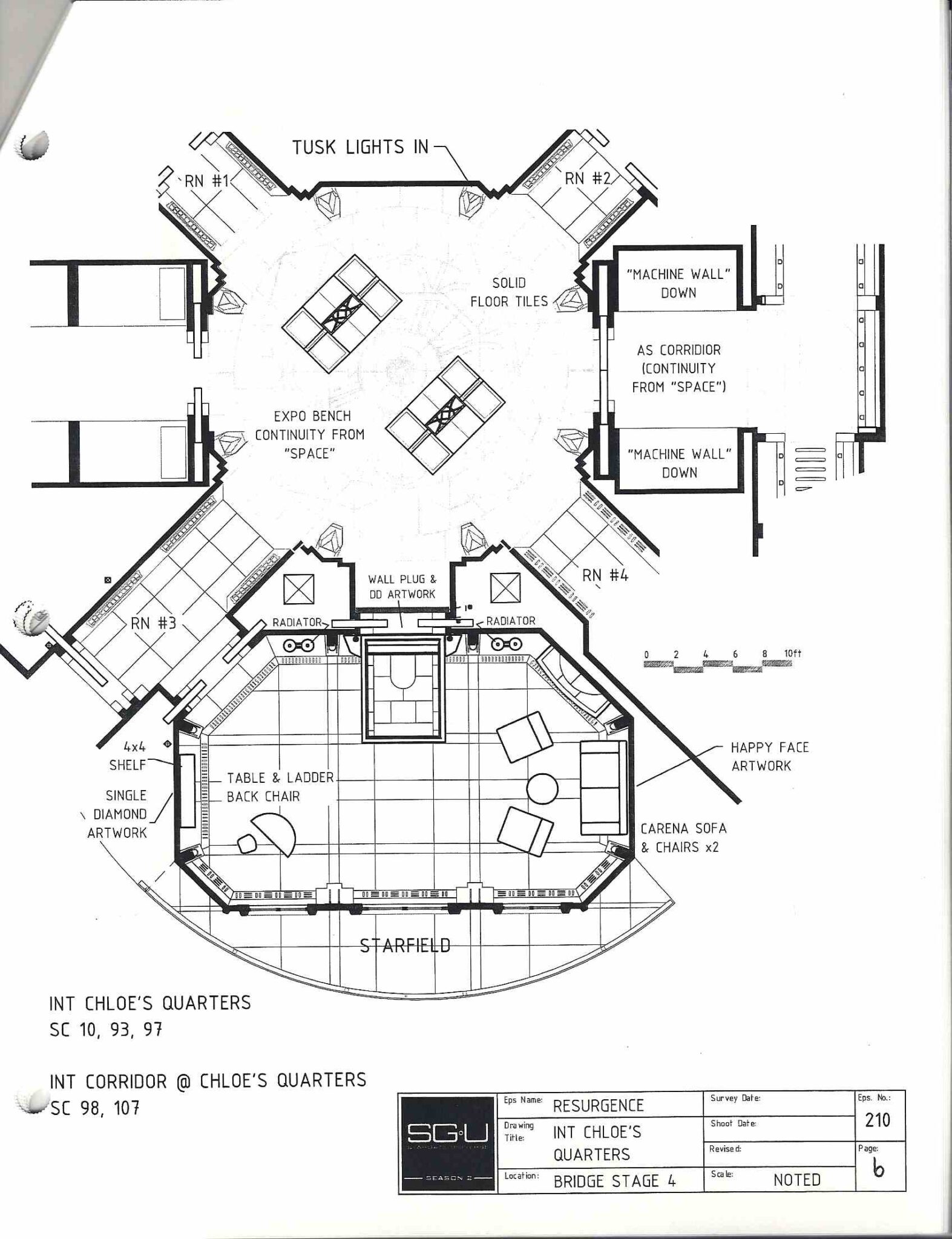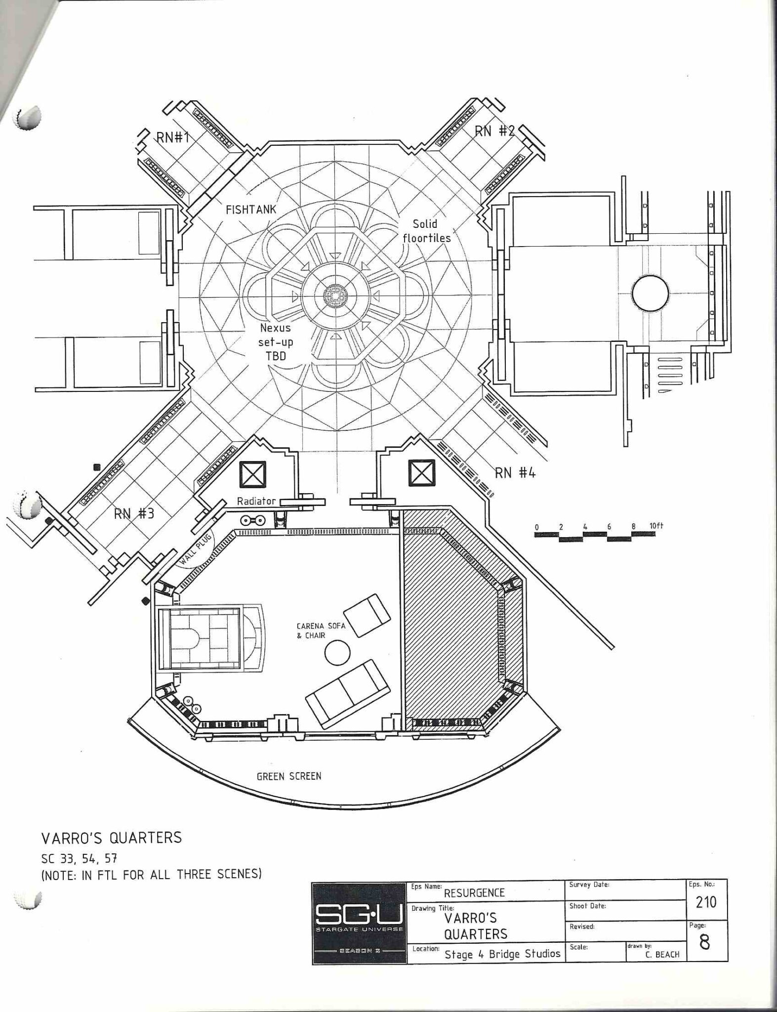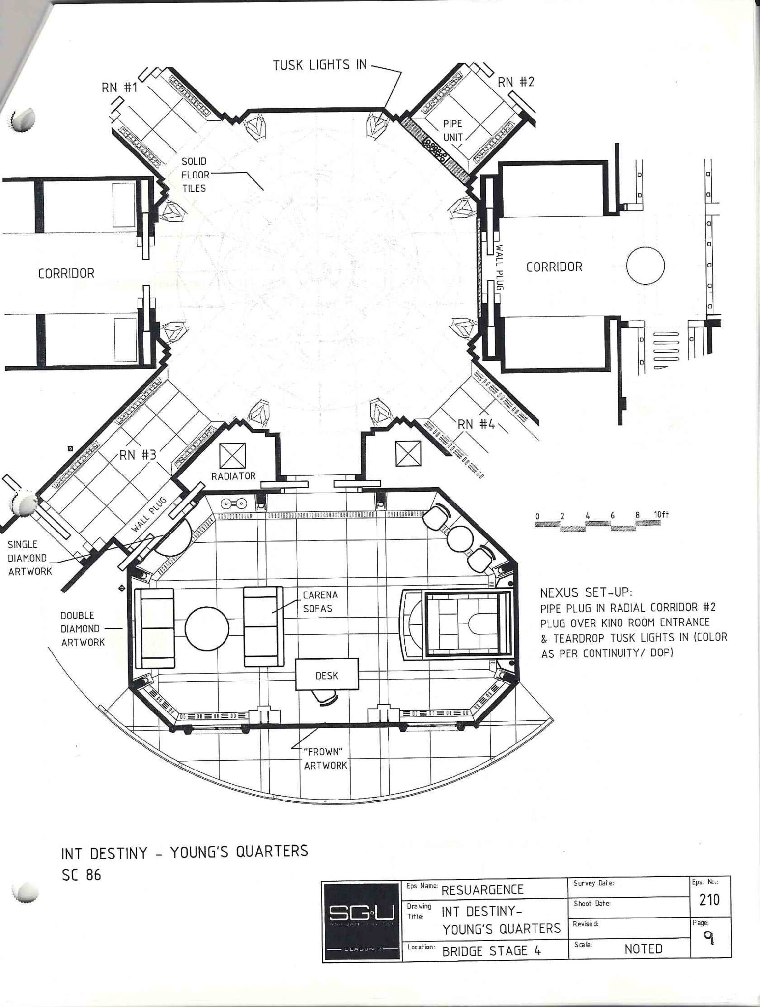 Chris Beach byl ředitelem uměleckého oddělení (Art Department) a v jednom z dílů Onboard Destiny s názvem „FINDING DESTINY A TOUR OF THE DESTINY SET“ nás provedl po lodi Destiny. Hovořil o natáčecím studiu a zdůraznil, že se snažili koncipovat kulisy co nejflexibilněji, protože většina scén se odehrává právě na jedné lodi. Bylo nezbytné, aby kulisy byly multifunkční, takže mohly snadno zobrazit i dosud neobjevené části lodi.