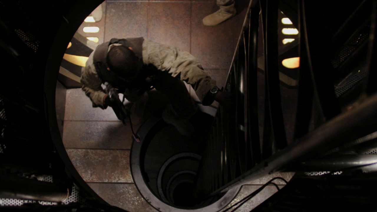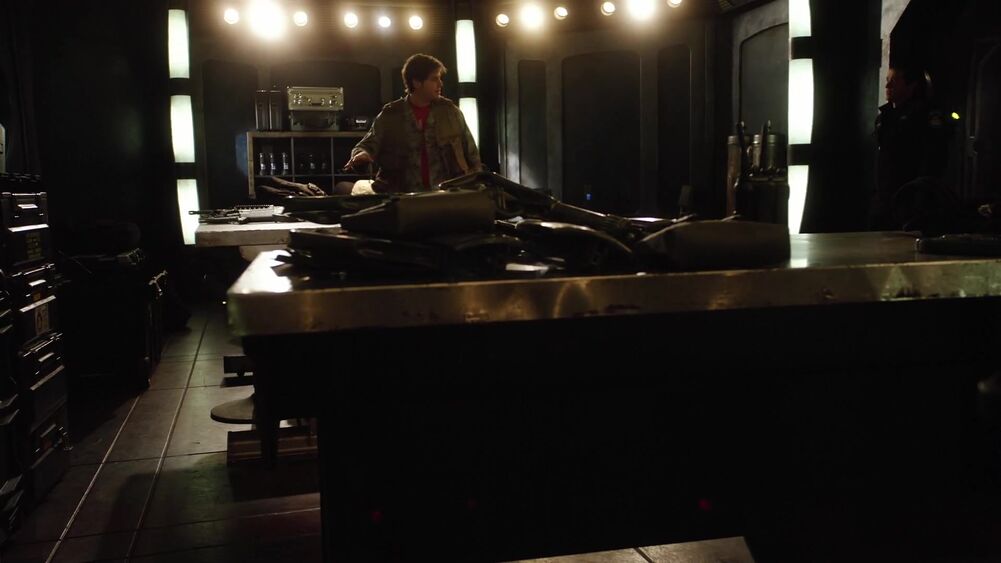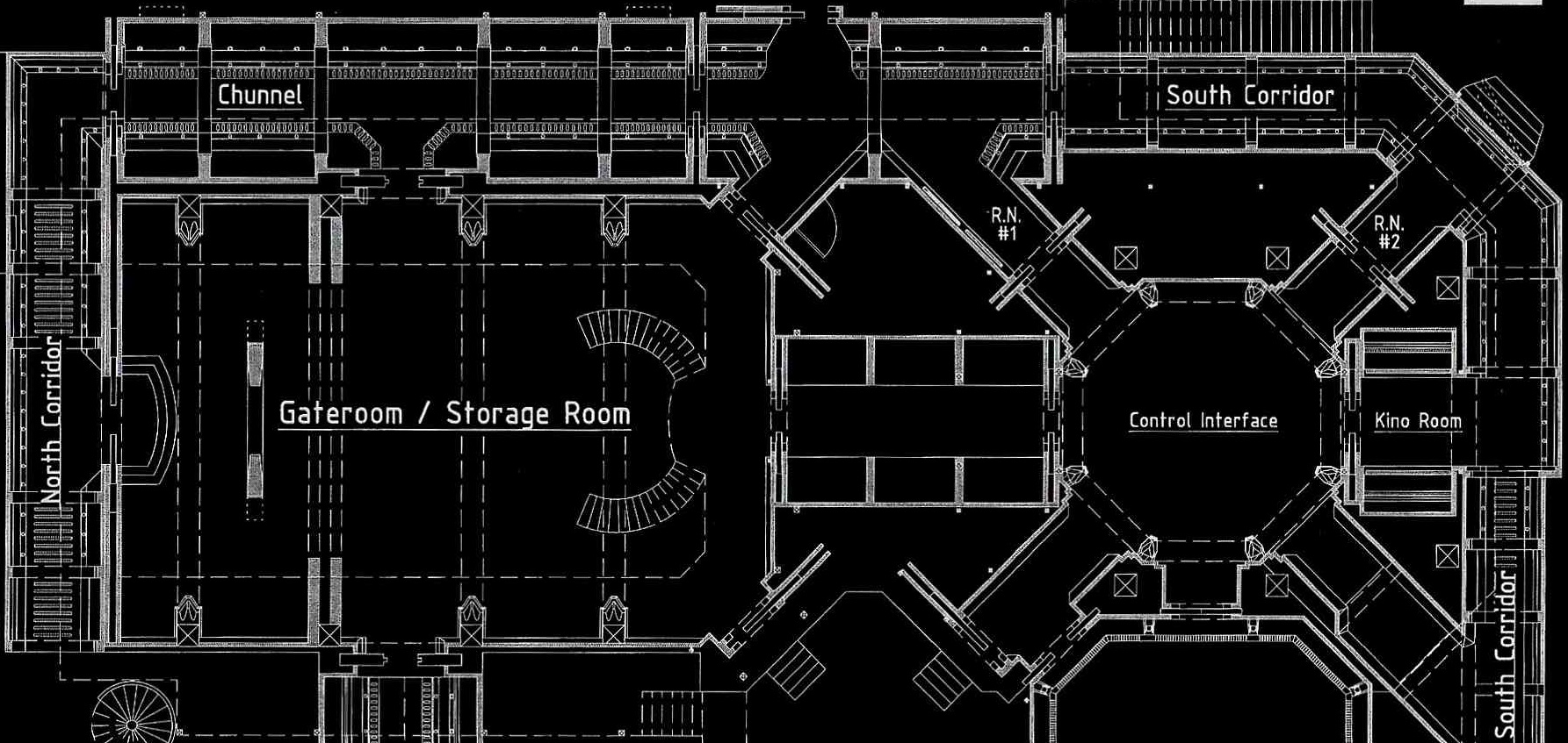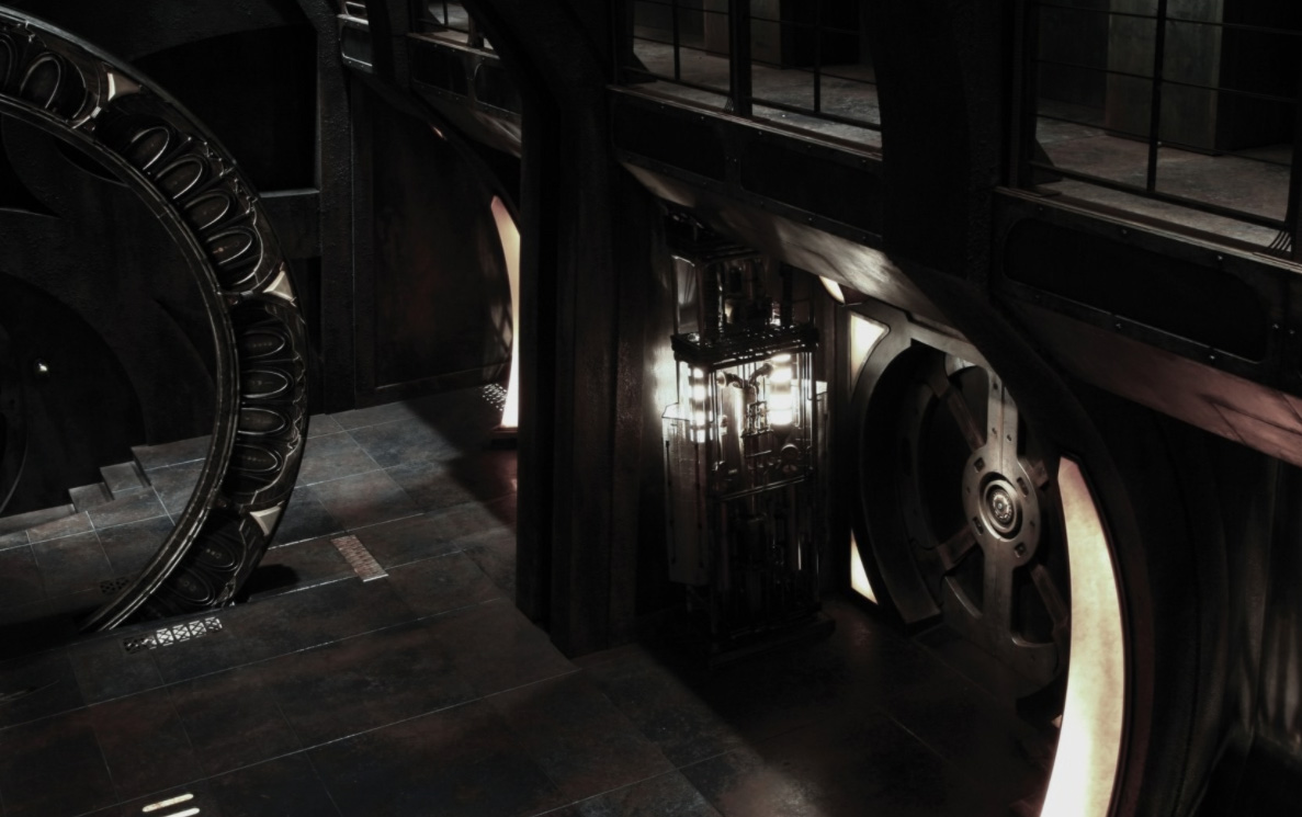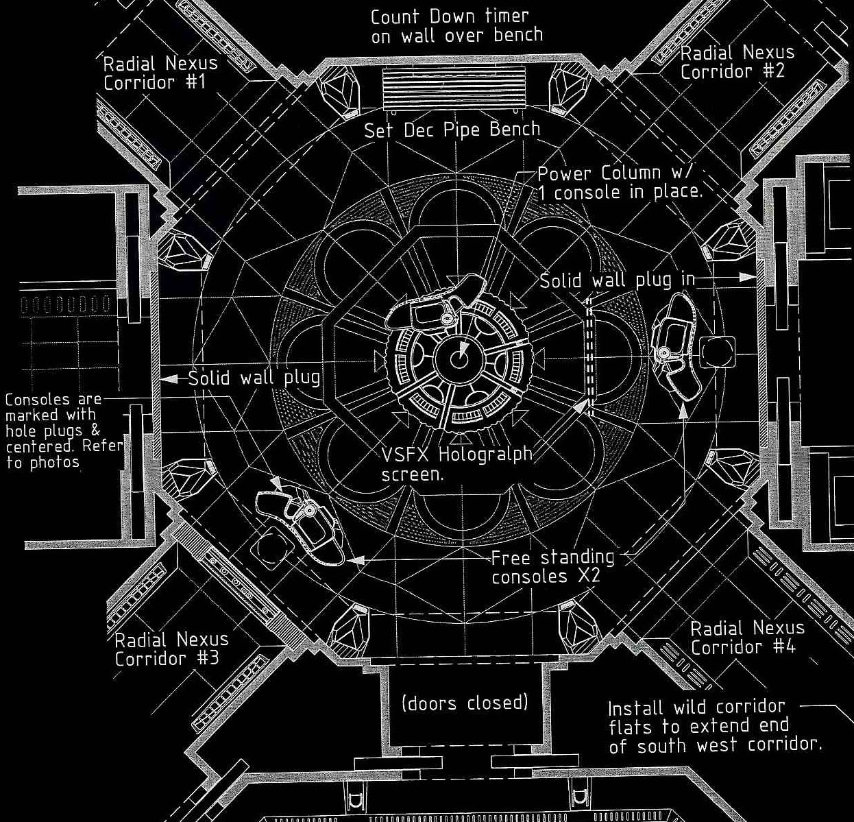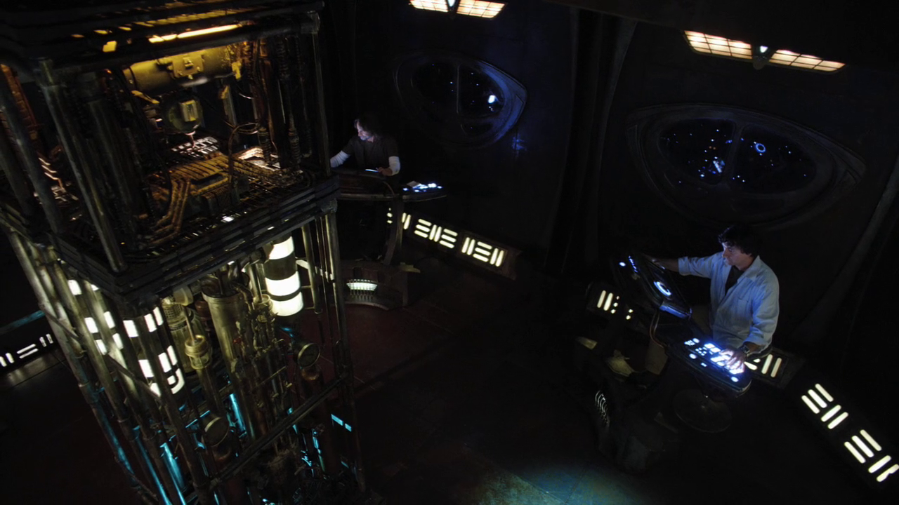 Chodba mezi místností s bránou a místností typu Nexus je skvělým příkladem multifunkčnosti. Tato část lodi slouží nejen jako sklad skafandrů, ale také jako chodba s nabíjecí stanicí nebo jako chodba před místností s křeslem. Podobně místnost s bránou není jen univerzálním skladem, ale slouží také jako Brodyho bar a dokonce jako tělocvična. Stačí jen odsunout dvoje ocelové točité schody, které dohromady váží asi tři tuny, a lze vytvořit další prostor. Krom ocelových a betonových části byly kulisy postaveny ze dřeva a nabarveny tak, aby svou texturou připomínaly kov. Součástí zadání bylo integrovat do kulis dostatečné množství světel tak, aby se minimalizovalo použití dalšího osvětlení při natáčení. Světla jsou umístěna po celém prostoru, s častým využitím světel pod úhlem 45° v chodbách. Dalším typem světel jsou tzv. „Tusk“ světla.