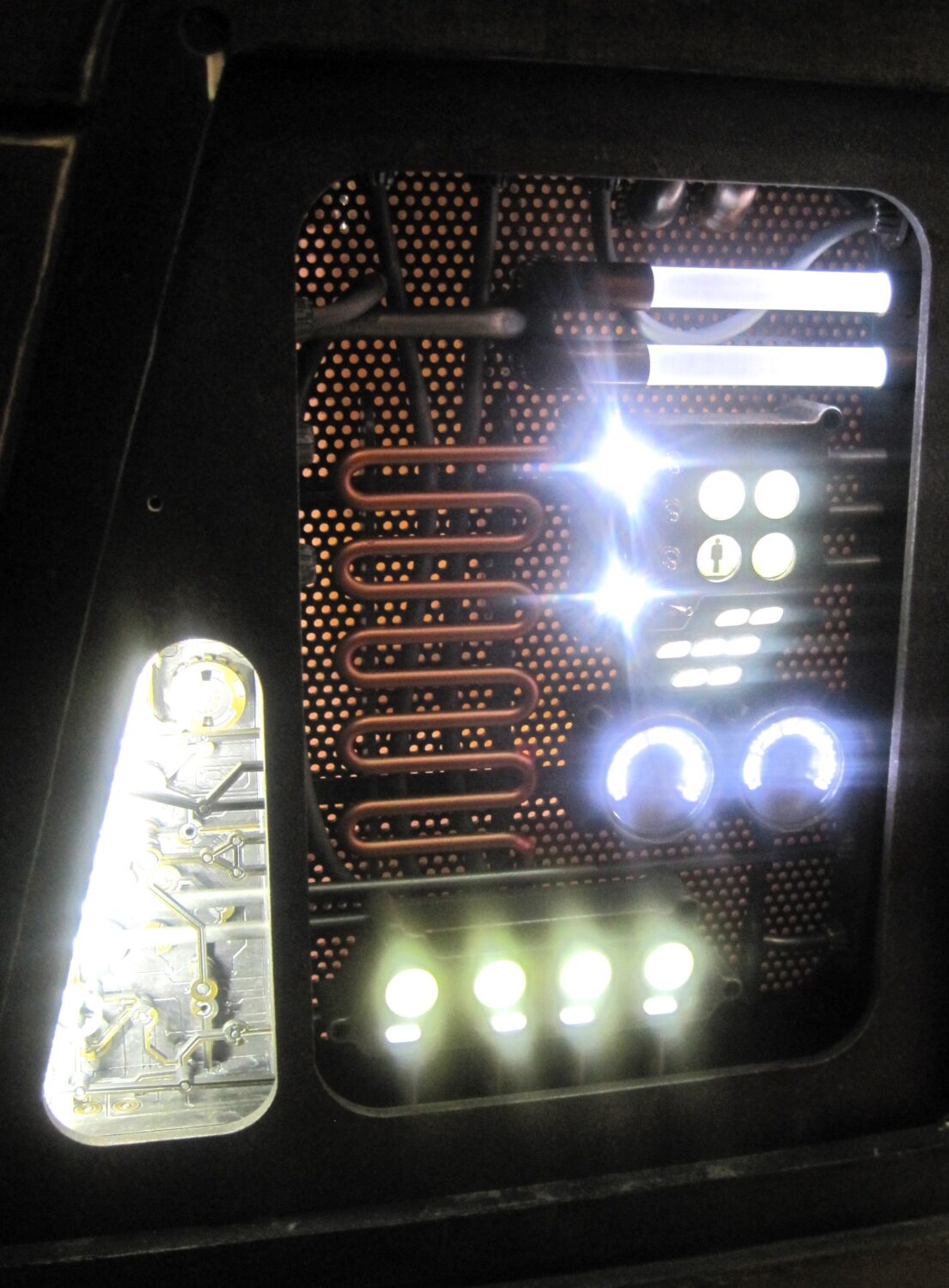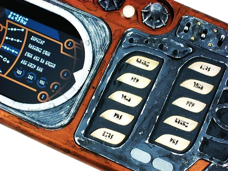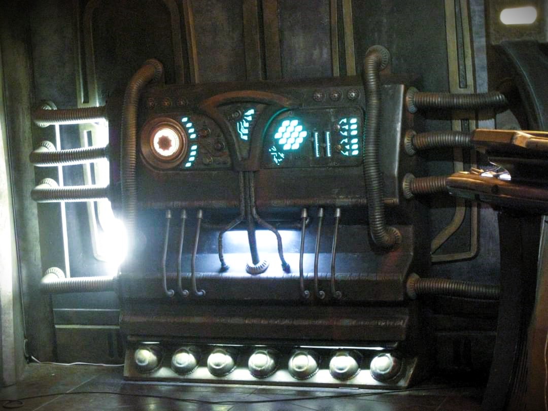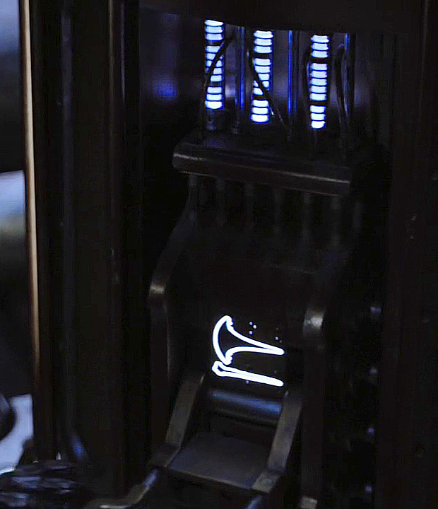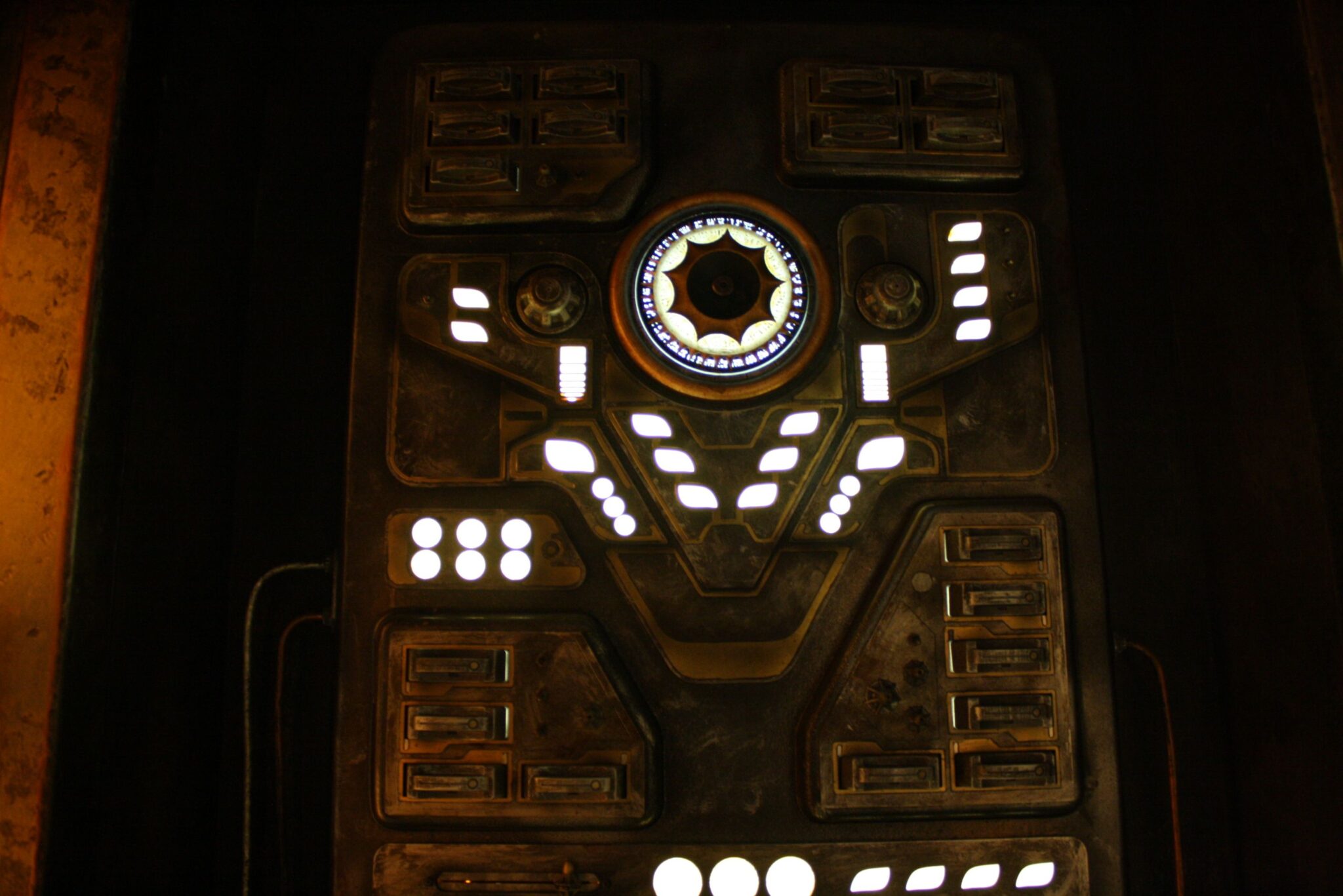Malé modré světlo na dveřích signalizuje, že jsou na automatiku a dole žluté nebo červené světlo signalizuje, zda jsou dveře otevřené nebo zamčené. Pod velkým kulatým tlačítkem, podél spodní části panelu, může být osm malých tlačítek s antickým popisem. Ty umožňují ruční přepsání, nebo změnu v kódu dveří.